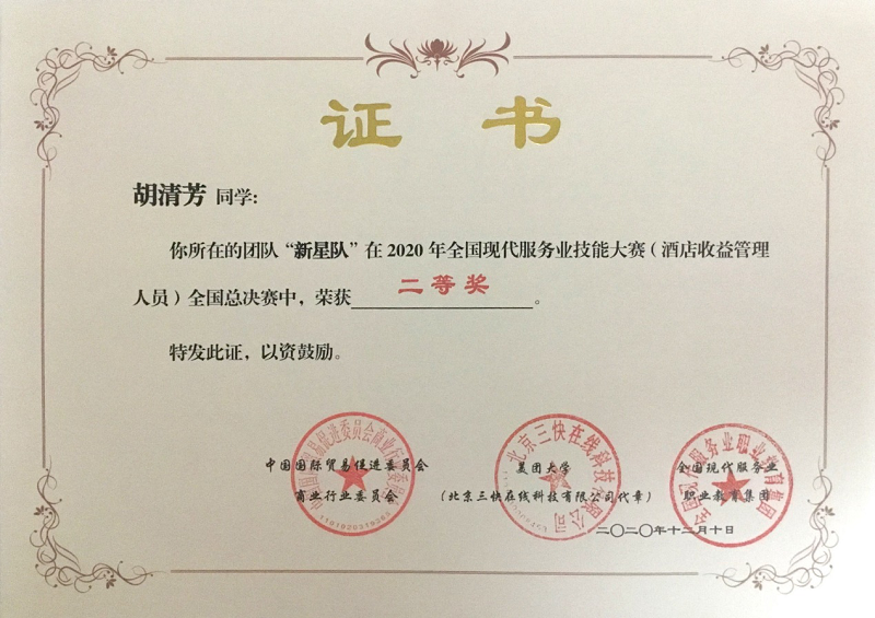 (本网讯 陈卉)2020年12月10日,2020年全国现代服务业技能大赛(酒店收益管理人员)全国总决赛在北京中航资本大厦举办。女同做爱