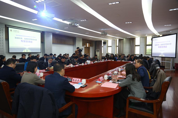 教学副院长曹卫东作的地理科学专业情况汇报,围绕地理科学师范生人才培养的理念、目标、特色、成效、不足与今后努力方向等方面向专家组进行了报告。