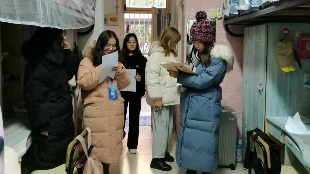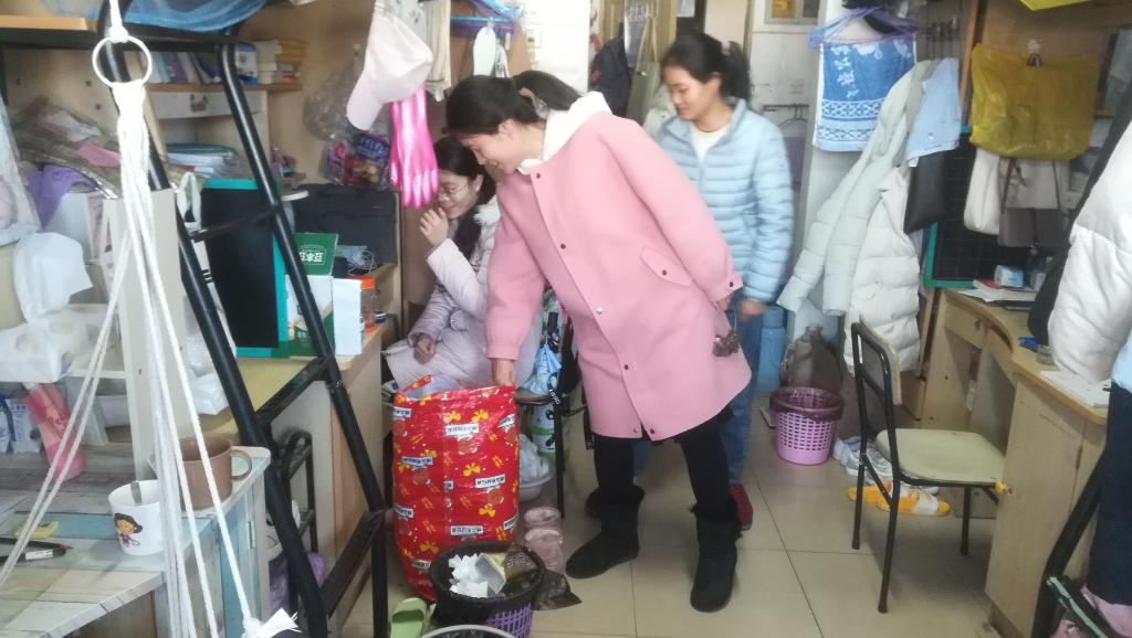 深入公寓,检查安全卫生。毕业班辅导员王美、韩红豆,新生辅导员赵佳慧深入学生宿舍,全面了解学生宿舍文化建设、卫生和安全问题,重点排查寝室安全用电和防火防盗等安全隐患,教育学生高度重视安全健康。走访过程中,辅导员们与同学们深入交流,反复叮嘱同学们,冬季要高度关注用电防火安全、饮食安全、出行安全、财务安全、就业安全等工作,要加强体质锻炼,提高健康意识,增强抵抗力,提醒同学们最近气温骤降,要注意保暖,期末考试在即,要合理安排作息时间,加强营养,放松心态,积极备考。同时,寝室是同学们生活休息的重要场所,要注意寝室卫生,定期通风打扫,以干净整洁的寝室环境迎接2021年的到来。
