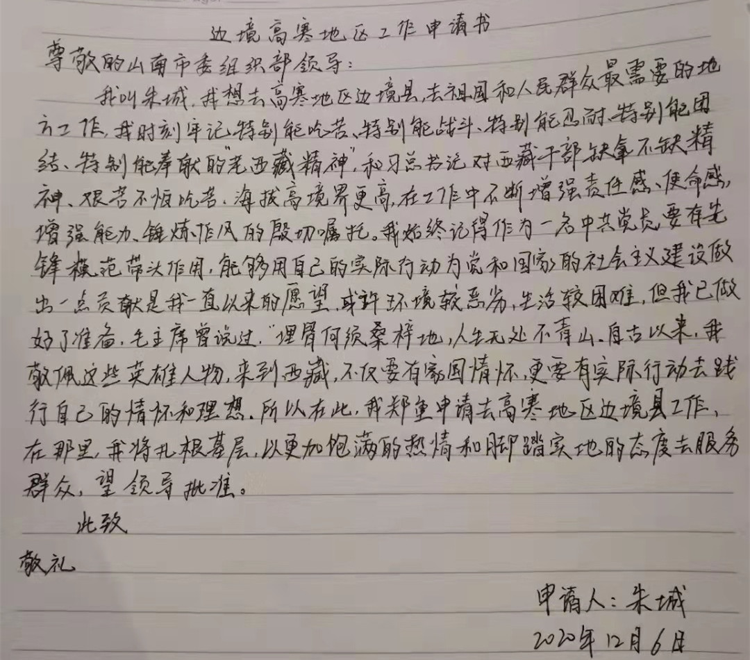 朱城:“我是党员,就应该到最艰苦的地方去!”
