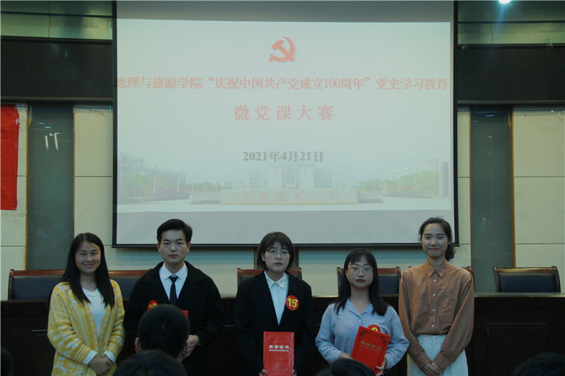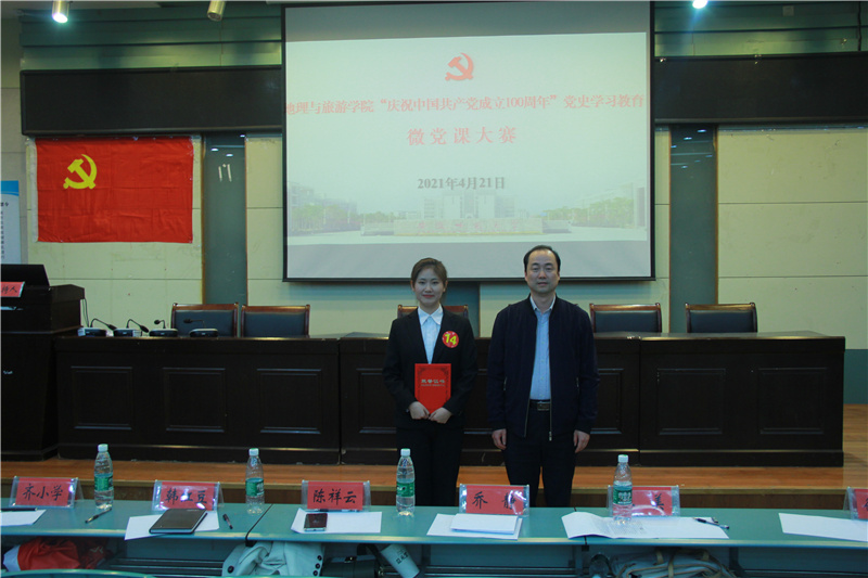 比赛结束后,乔静就本次微党课大赛进行点评。他首先强调了举办比赛的初衷和意义,并以校十佳大学生、优秀学生党员罗勇的事迹为例,激励在座学生骨干勇于担当,乘风破浪。乔静对参赛选手的微党课给予了充分肯定和高度评价,认为大家的授课主题好、备课态度好、授课内容好、活动成效好,是一堂生动深刻的党史学习教育课。接着,他对同学们的授课作了指导,并指出,党员是示范,是一面旗帜。全体党员和入党积极分子要以本次微党课大赛为契机,深刻认识到开展党史学习教育的深远历史意义和重大现实意义,以多形式、多载体和多平台系统深入学习党史,在实践中不断提高思想境界和党性修养。最后,各位评委老师为获奖学生颁奖并合影留念。
