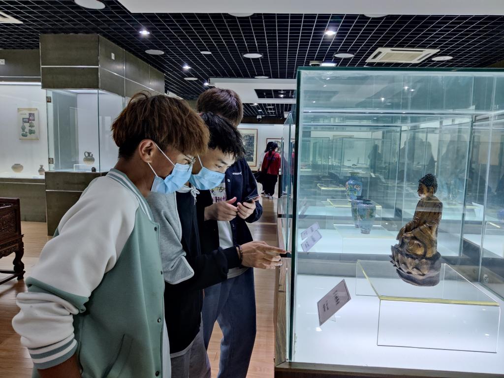 活动伊始,同学们有序进入展厅。在讲解员的带领下,大家依次参观陶瓷器展厅、美术画作展厅等,认真聆听讲解员对每件文物背后的相关历史知识的介绍。在参观文物的同时,赵佳慧向同学们科普相关的文物知识。同学们积极提问,认真学习,从一幅幅图片、一件件文物中了解历史、学习历史、感悟历史。