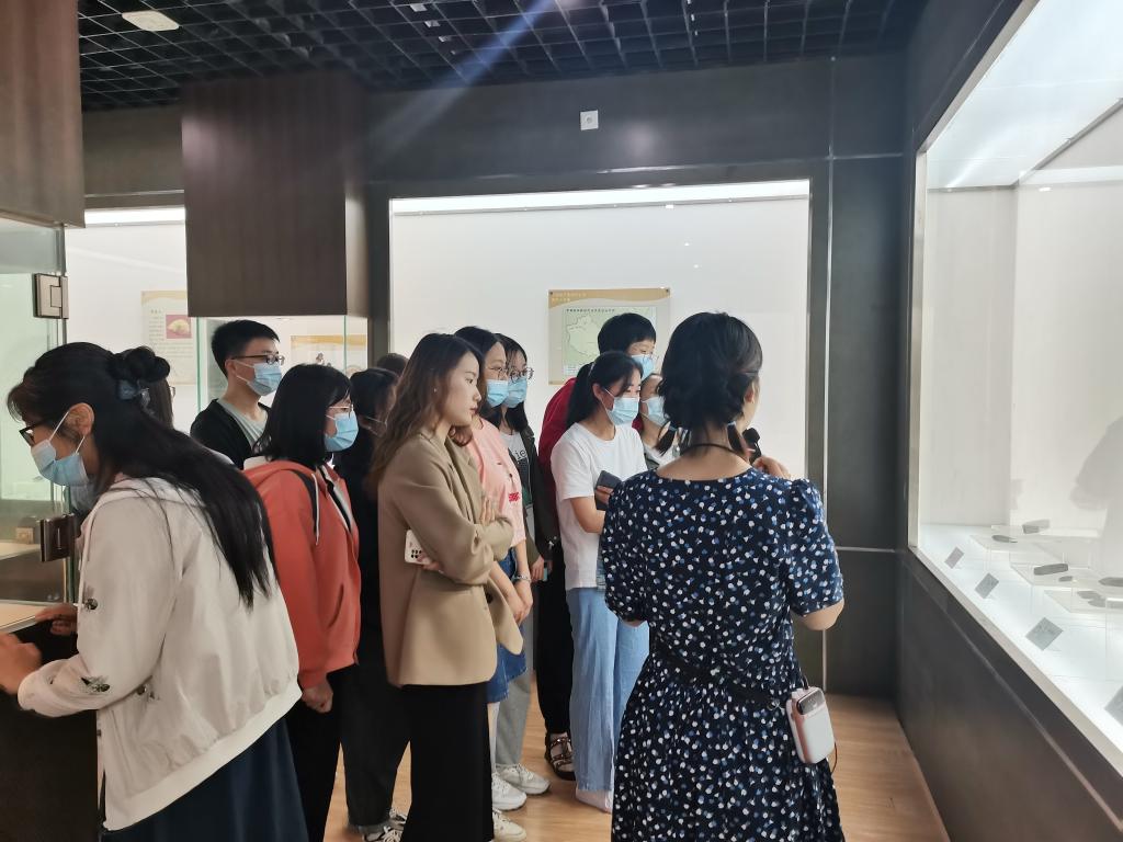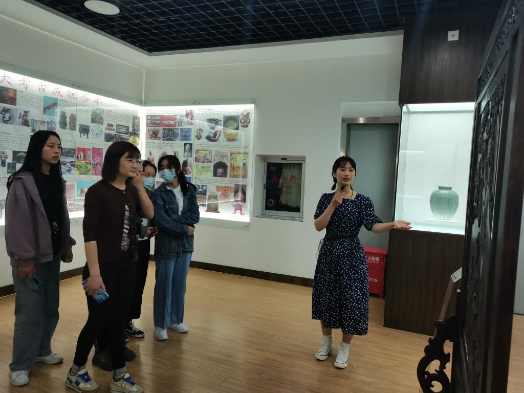 在陶瓷器的陈列厅内,同学们参观古老的先秦货币、精美的唐三彩,观看考古发掘现场的照片。大家通过参观展览,了解国家文物知识,感叹古代精美绝伦的陶瓷制作技艺,感悟祖先的伟大创造精神,更感受到人类文明绵延几百万年生生不息的强大力量。活动最后,赵佳慧与全体同学合影留念。