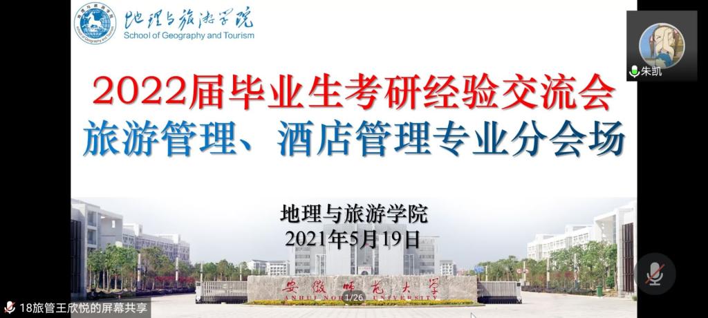 会议分为地理科学、地理信息科学、土地资源管理、城乡规划、旅游管理和酒店管理5个分会场。首先由2017级各专业学生代表从正反两面2018级的学弟学妹们做考研经验分享,2017级考研代表分别从心态调整、备考时间安排、各科目复习方法、学习资料到学校专业选择、备考雷区、经验教训等方面开展了考研干货分享。