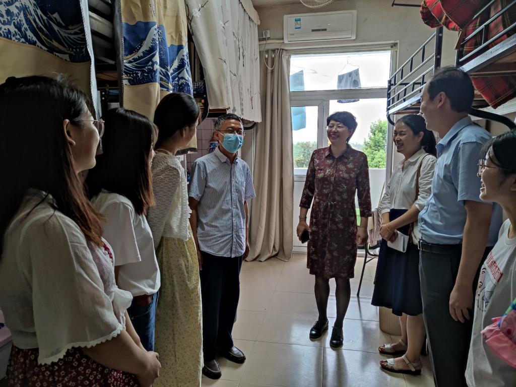 党委副书记乔静带领毕业班辅导员深夜进入毕业班寝室,开展晚归不归检查。同时,走访过程中,乔静与毕业班同学依依惜别,询问同学们毕业去向,了解同学们离校日程安排,并提同学们返程途中务必注意安全,到家后及时报告平安。