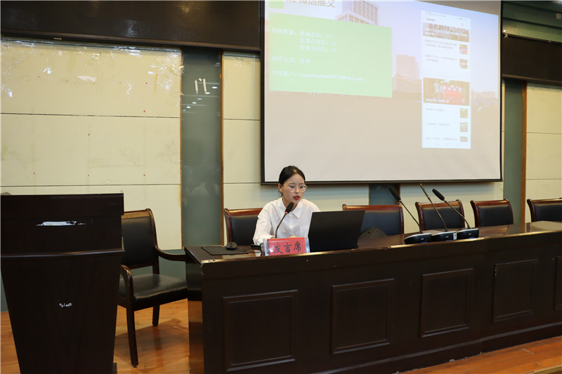 宣传部陶慧敏对参会人员进行微信推文制作及自媒体培训。先后介绍了利用秀米制作推文的方式,推文的内容、图片、布局及排版,建议各宣传员多多学习借鉴学校及各类优秀公众号。此外,她指出QQ公众号、微博要实时更新动态,不得出现原则性错误。