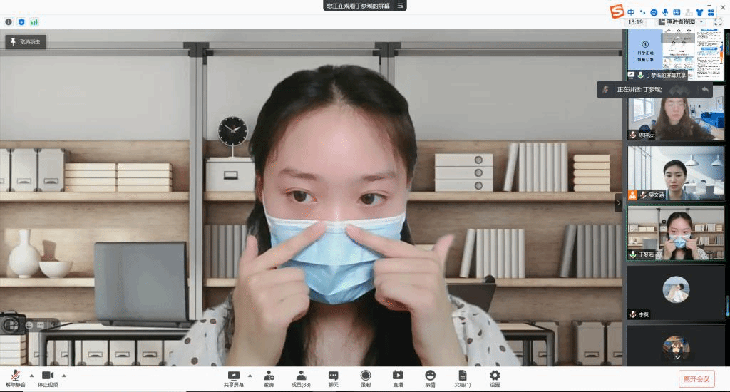 2019级地理科学拔尖人才班丁梦瑶同学以“科学防疫 从我做起”为主题为大家介绍了科学防疫小常识及学校关于疫情防控的相关要求,并根据2021年联防联控机制发布的新版“戴口罩指引”为同学们现场示范正确有效的口罩佩戴方式,提醒团员青年养成良好生活习惯,充实暑期生活,关注心理健康。