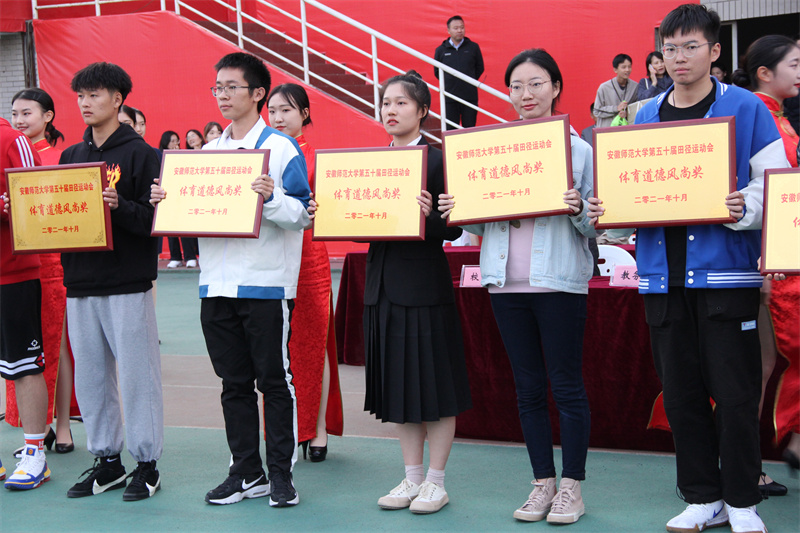 韦银艳 许晓玉)10月23日下午,历时三天的安徽师范大学第50届田径运动会于北体育场举行闭幕式,高潮迭起、异彩纷呈的第50届运动会在全校师生的激情昂扬中落下帷幕。闭幕式由校党委常委、副校长陆林主持。