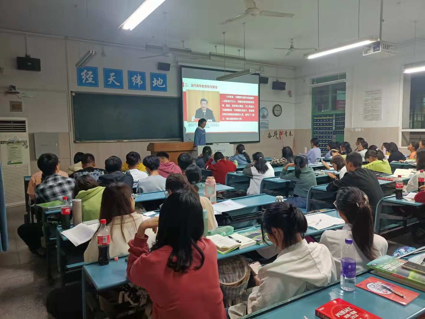 其次,结合青年人的责任与担当,刘晨辰带领大家学习习近平总书记强调的“志不立,天下无可成之事”,要志存高远、忠于祖国,努力做新时代具有远大理想和坚定信念的爱国者;“天将降大任于斯人也”要敢于担当、勇于奋斗,努力做新时代具有责任意识和创新精神的建设者;“梦想从学习开始,事业靠本领成就 ”,要勤奋学习、锤炼身心,努力做新时代具有过硬本领和高尚品格的接班人。同学们在学习习近平总书记名言金句中领会自身使命与责任。