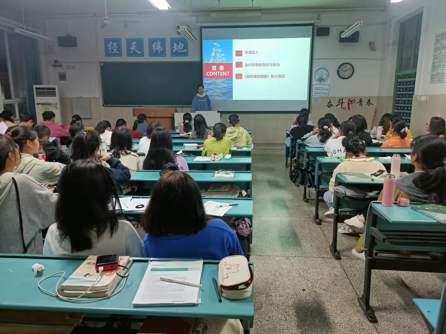 最后,同学们一同观看电影《我和我的祖国》。在一个个平凡而又伟大的故事中,同学们深刻领会到祖国的每一步建设都离不开普通人的奉献与付出,即使在平凡的岗位上,也要努力做出不平凡的成就,在小处为祖国的发展贡献力量。影片结束,同学们对于“当代青年应该成为怎样的人”这一问题进行了思考和讨论。