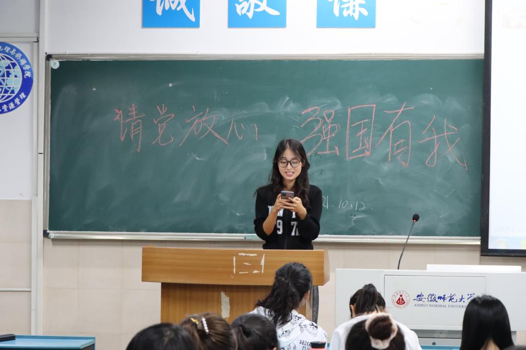 首先,黄倩带领大家深入领会学习“七一”重要讲话精神的重大意义和丰富内涵,激发了大家爱国、爱党的热情,引导青年深入地了解党的历史,领悟党的精神,切实增强青年大学生的历史责任感和使命感。随后,同学们欣赏了《我和我的祖国》电影片段,看着神舟11号飞船返回着落的画面,所有人心中都燃起一团自豪之火、团结之火。
