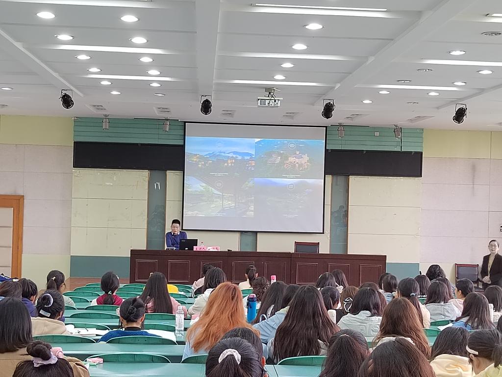 实验楼101报告厅,由旅游管理专业教师王莉主持。