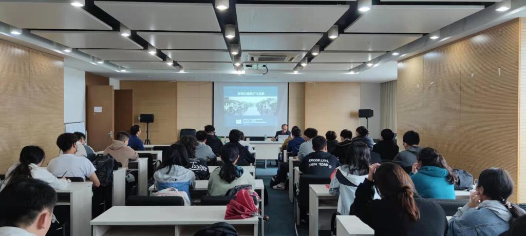 罗超教授以“苏州古城保护与更新”为主题,分别从苏州古城特色、古城及其保护历程、历史文化名城保护规划、历史文化街区保护、历史建筑保护利用五个方面,向同学们全面系统地介绍了苏州古城的具体情况及其保护与更新的机制。