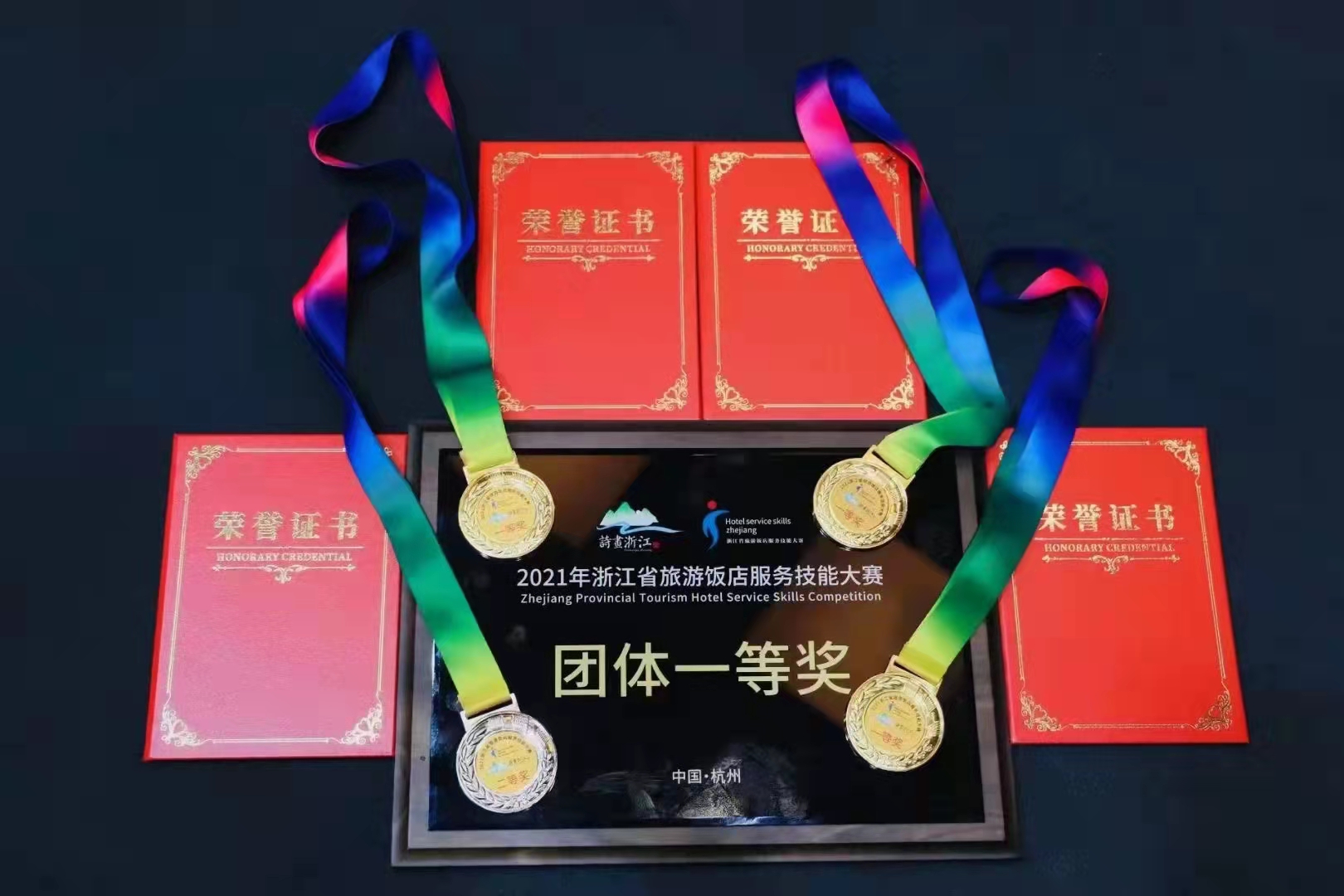 本次大赛以“匠心铸就梦想,技能成就未来”为主题,展示浙江旅游饭店服务技能提升成果,展现浙江旅游饭店行业“窗口”形象和服务风采。大赛分个人赛、团体赛和表演赛。其中个人赛分为:“迎亚运”特色服务设计、中餐宴会摆台、“迎亚运”主题宴会设计、中式铺床及客衣服务四个项目。熊淑妍同学参加的“迎亚运”特色服务设计项目成绩由理论考试、英语口试、“迎亚运”特色服务文案设计及现场解说三个部分组成,其中理论考试占15%,英语口试占10%,“迎亚运”特色服务文案设计及现场解说占75%。入场后,随机抽取饭店特色服务设计项目背景材料,结合亚运会主题精神、酒店特色服务设计等进行现场解说,充分考验了选手创意服务及语言逻辑表达能力,极具挑战。经过数日深入探讨与认真打磨练习,熊淑妍同学最终在强手如林的竞争中脱颖而出,将酒店创意特色服务完美呈现出来,并荣获浙江省 “迎亚运”特色服务设计“个人一等奖”。