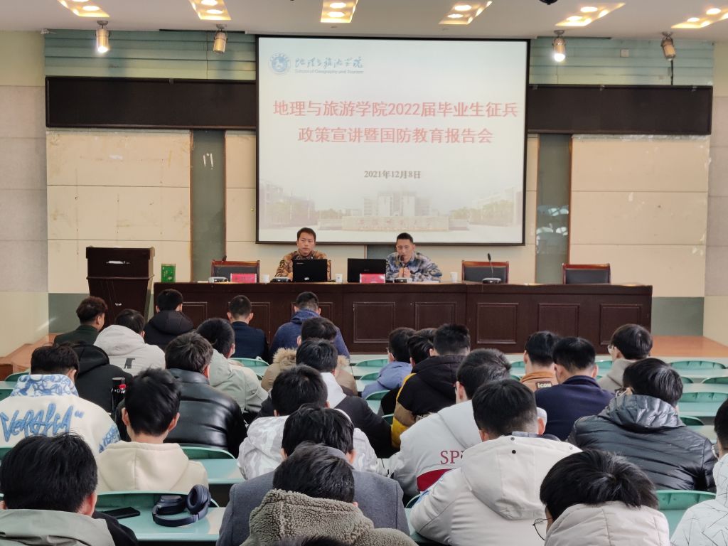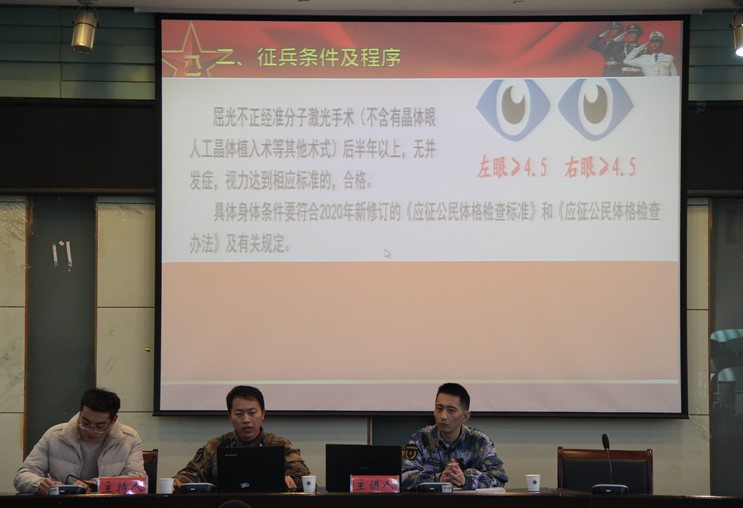 于实验楼101报告厅召开2022届毕业生征兵政策宣讲暨国防教育报告会,镜湖区人武部军事科参谋叶振纯、政治工作科干事安小二、女同做爱