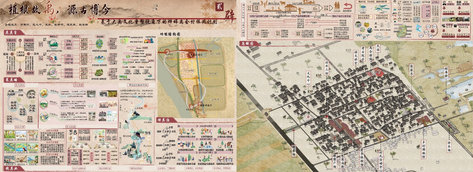 城乡规划专业教师包善驹、王原、白雪、黄秋实、李婷君、金莹莹、王雪微指导下,2019级城乡规划专业学生万雨婷、范之千、汪澄、张紫竹、蒋亚奥、赵芸锋同学的作品《植根故禹,源古博今》荣获三等奖;李沛原、陈家乐、陈明昱、徐子萱、张彤、马真龙同学的作品《天水禹汇,星渠伴升》荣获佳作奖;李景怡、张颖、华夏、程芷欣、郝泽琦、陶慧敏同学的作品《淮畔幽兰,天河遗梦》荣获佳作奖。