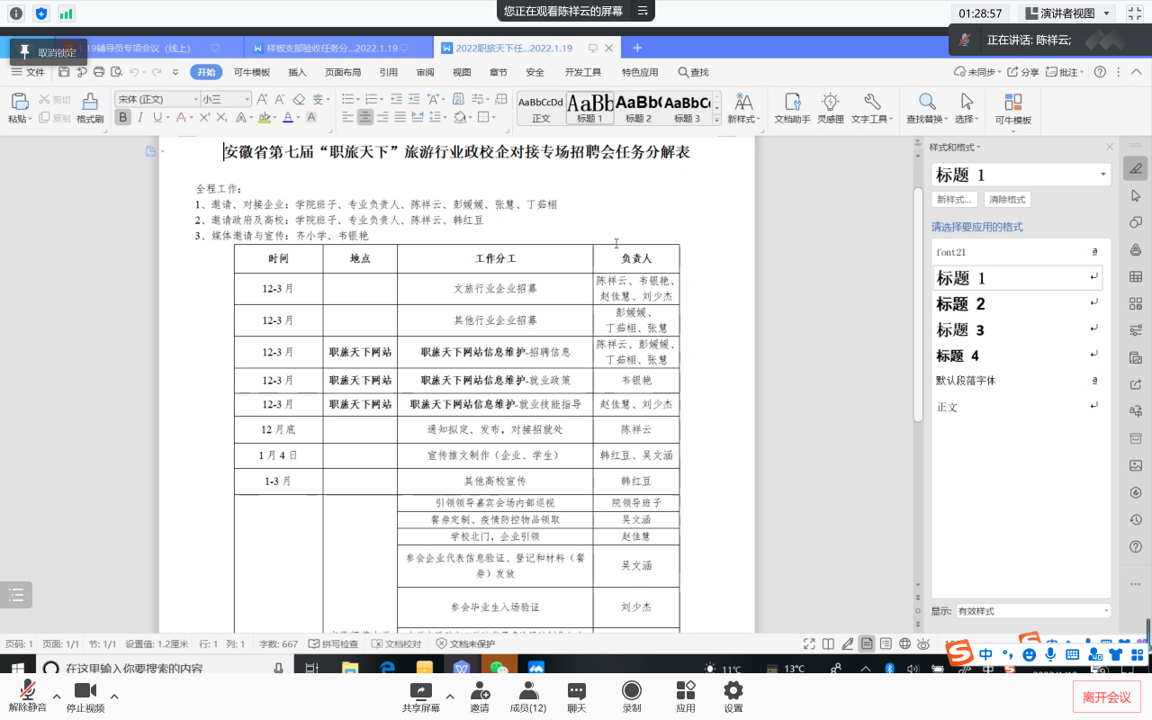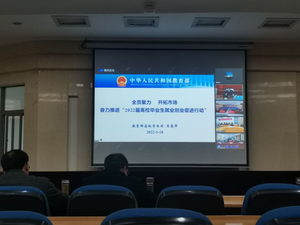 组织2022届、2023届毕业班辅导员在学校财务处二楼会议室参加教育部2022届高校毕业生工作第一次调度视频会议。