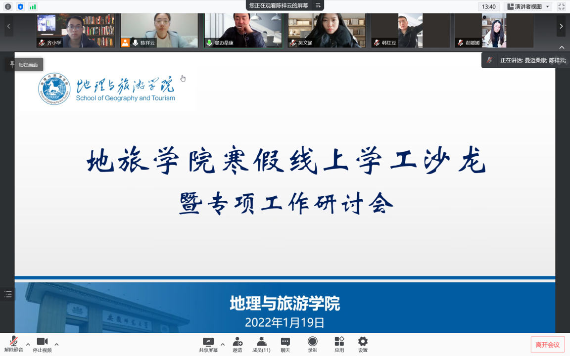 寒假线上学工沙龙上,乔静还就学生疫情防控、假期安全教育、“职旅天下”专场招聘会等工作进行了部署和培训,提出明确要求和工作举措,有效提高了辅导员服务学生的能力和水平。