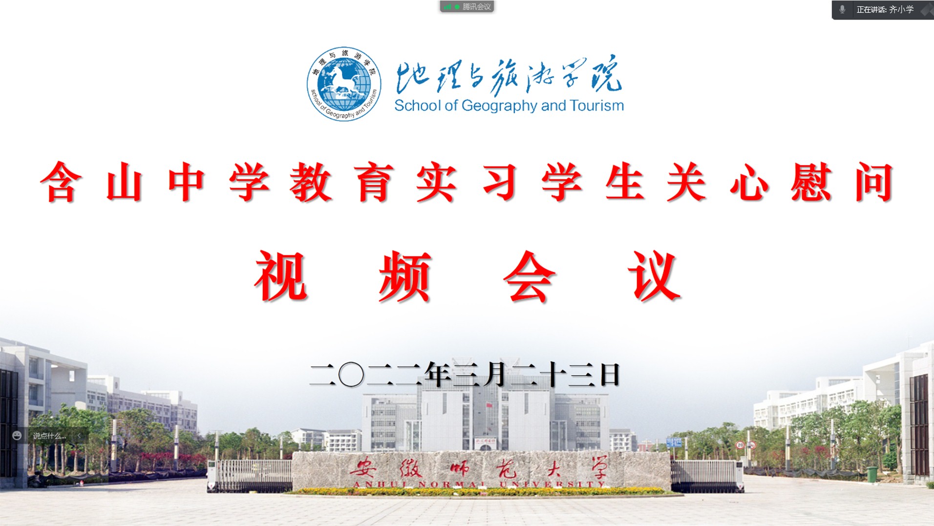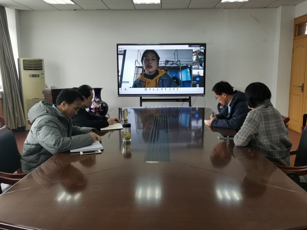 行政楼四楼会议室通过腾讯会议召开含山中学教育实习学生关心慰问视频会议,女同做爱