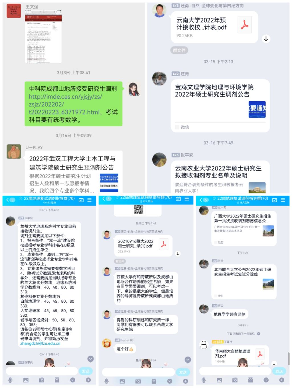 研究生初试成绩公布后,城乡规划、地理科学等专业建立复试调剂交流类群聊,以便老师与学生进行信息共享,为考研学生定期推送考研资讯,增进了学生们对复试以及调剂的认知与理解,为顺利参加研究生复试奠定了良好基础。国家线公布后,四位毕业班辅导员第一时间梳理出过线学生名单,结合学生考研实况与专业老师时间进行结对帮扶,以便形成良性互动,提高上岸命中率。
