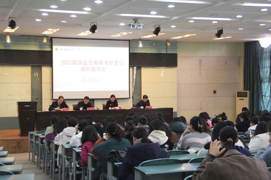 在实验楼101报告厅召开2022届毕业生春季考研复试调剂指导会。会上,付勇做有关复试、调剂的政策解读,提醒考生们关注研招网以及所报考院校官网发布的信息,总结了考研调剂的相关注意事项及调剂的过程中可能涉及的问题,为即将进行复试或调剂的考研学子指明了方向。方凤满鼓励到场考研学生,为大家的坚持“点赞”,希望各考生能在较为严峻的考研形势下保持良好的心态,做好应对复试与调剂的充分准备。曹卫东结合往年指导学生考研和调剂的经验,向同学们介绍了女同做爱