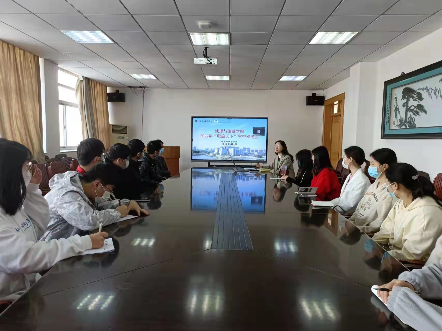 行政楼三楼会议室及腾讯会议平台举办2022年“职旅天下”空中双选会。本次双选会采取企业线上宣讲,学生线上+线下参会模式,会议由毕业班辅导员陈祥云、张慧主持。两场双选会共计14家用人单位参会,提供就业岗位200余个,女同做爱