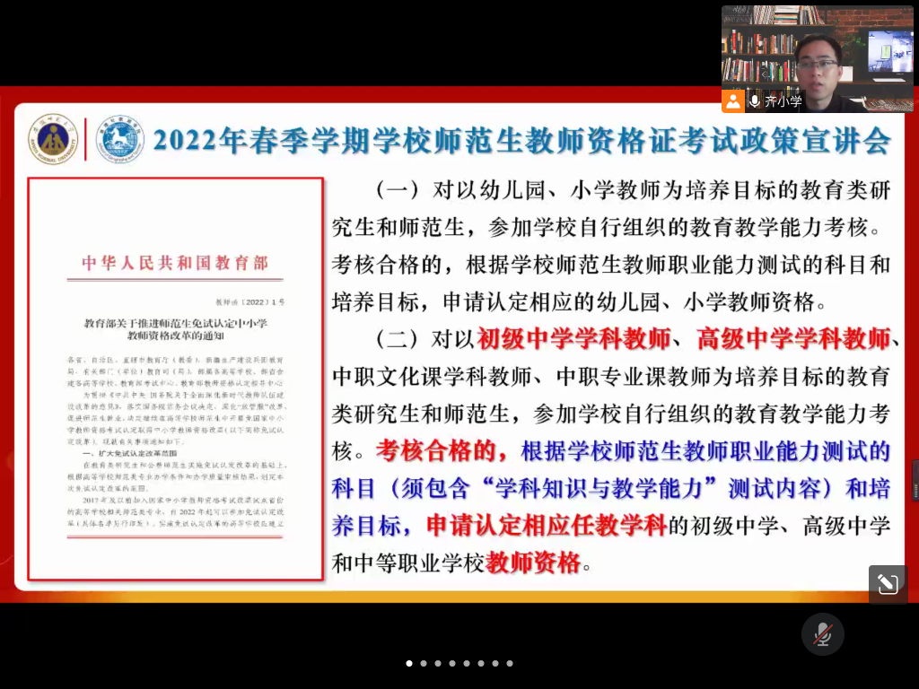 积极回应学生诉求,紧紧抓住学校师范生教师资格证免试认定改革校级考试等契机,迅速启动“我为师生办实事”“团结花开”民族班(第二期)师范生教育教学能力提升辅导,为每一位边疆地区少数民族学生配备“朋辈帮扶”小导师,进行一对一精心辅导。