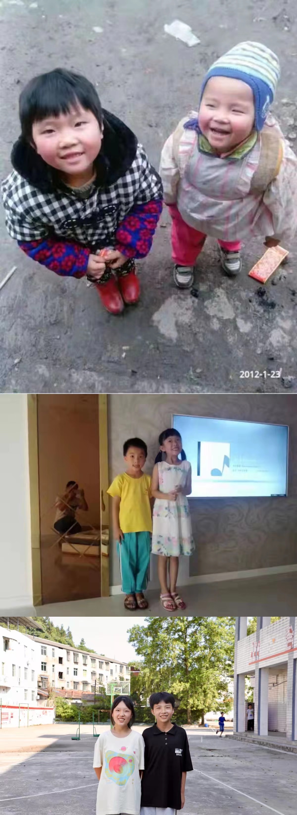 照片中的姐弟都是川队的受助学生,姐姐叫张月,弟弟叫张奥,这组照片是姐弟俩为数不多的合影,都是由川队的志愿者为他们拍摄记录的。