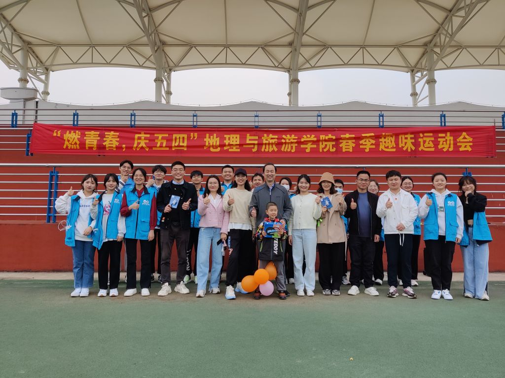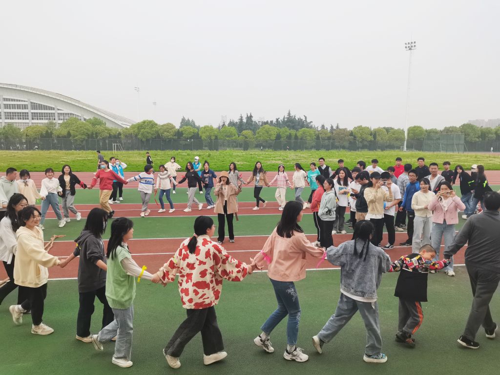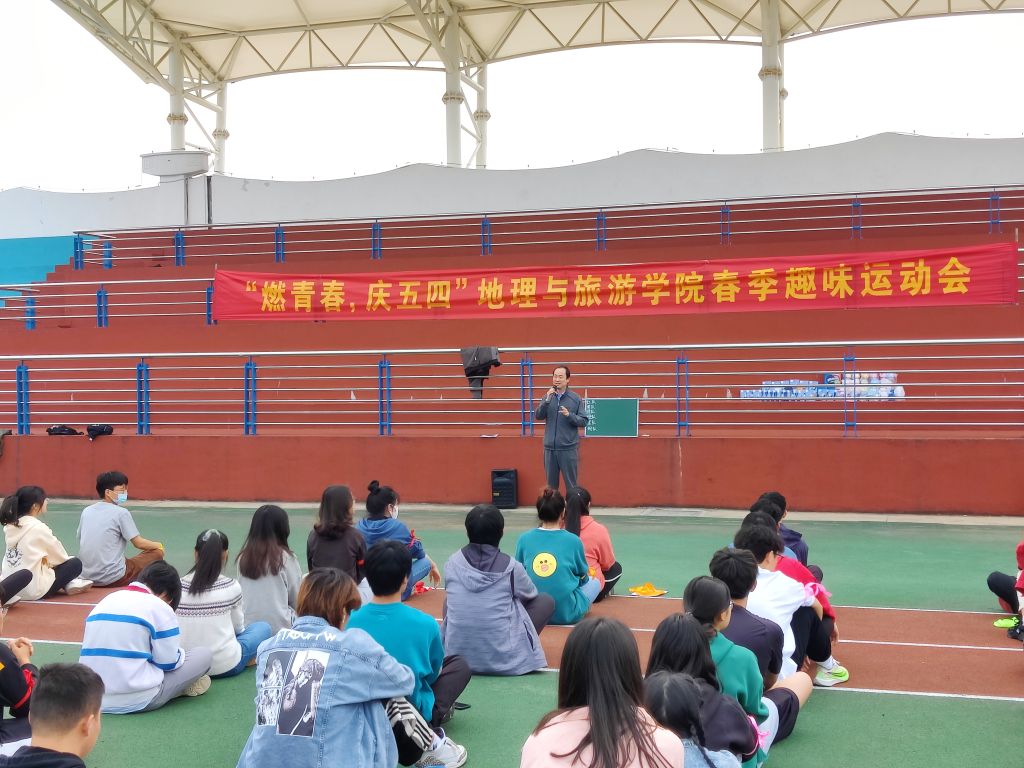 党委副书记乔静与同学们讲话并致开场词,他首先祝同学们五一劳动节快乐,然后鼓励同学们积极参与、尽情释放运动才能,彰显地旅学子们的青春活力。随后,运动会在动感的音乐节奏和欢乐的手拉手暖场活动中展开,老师和同学们一起汇成同心圆,在主持人的指令中“抱团”组合,欢声笑语不断。随后又陆续分六组竞赛,进行了踩气球、扔绣球、五人六足以及你画我猜(古诗词)趣味活动,运动会项目设置既考验了个体的灵活创意、随机应变能力,也考验了团队的协作互助、默契配合程度。通过积分排序,最终评选出一等奖一组,二等奖一组、三等奖三组,并由乔静给他们颁发了奖品。