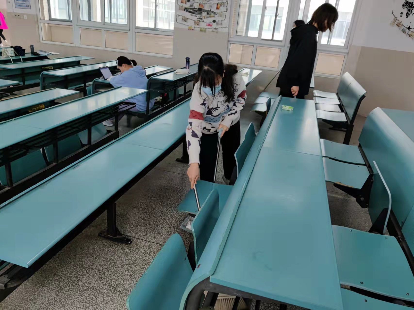 实验楼开展志愿服务活动。地旅学子们充分展现了不怕脏、不怕苦、不怕累,敢于冲在前面、敢于抢挑重担的精神风貌,有的用扫帚清扫地面,有的忙着把从桌椅中捡出来的废纸、塑料袋等扫进垃圾箱,有的擦拭座椅……大家热情高涨,以劳动为荣,乐在其中,用实际行动让我们的校园环境更加美好,给师生创造愈加温馨、舒适的学习环境。