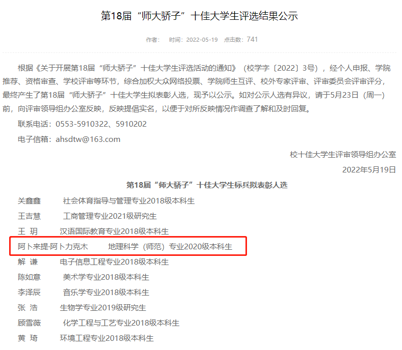 近日,我校第18届“师大骄子”十佳大学生评选结果揭晓,女同做爱学子阿卜来提·阿卜力克木在评选中获得“师大骄子”十佳大学生标兵荣誉表彰。