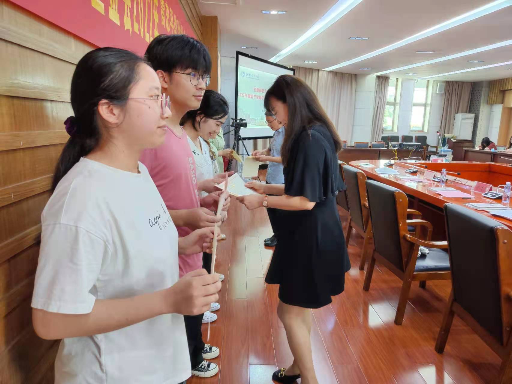 2019级地理科学师范专业程菲、2019级旅游管理专业熊淑妍、2020级旅游管理专业布力都春·加林和2019级地理信息科学专业甄娜作为获奖受助学生代表,对雷忠平先生和刘明达先生的捐资助学善举表达了感激之情,并分享了自己在思想、学习、工作、生活等方面的成长历程和收获感悟,并立志在以后的学习生活中,将这份帮助和善意传递下去,心怀感恩,志存高远,砥砺前行,以实际行动回馈社会、报效国家,做对社会有用的人。