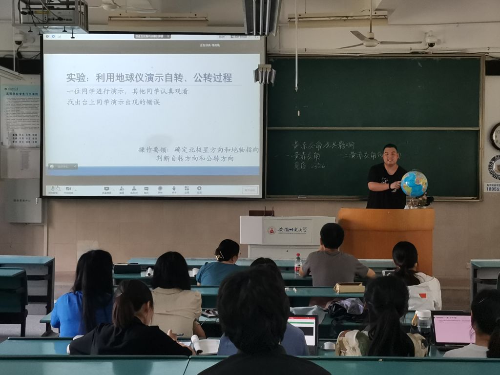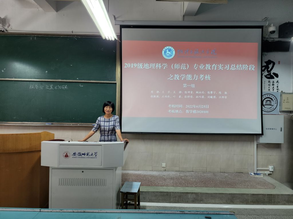 在学校行政楼2号楼一楼、二楼多媒体教室举行教育实习考核,2019级地理科学(师范)专业全本科生以“线上+线下”方式参加考核。考核专门邀请师大附中等重点中学一线教师担任主评委,实行“1位中学地理教师+1位专业教师”双评委制。教育考核由地理科学专业负责人朱永恒主持。