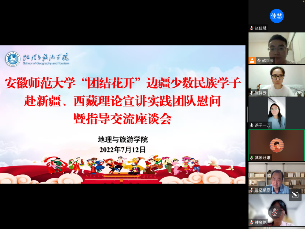 开展线上座谈会慰问指导国家级暑期社会实践重点团队——安徽师范大学“团结花开”边疆少数民族学子赴新疆、西藏理论宣讲实践团队,女同做爱