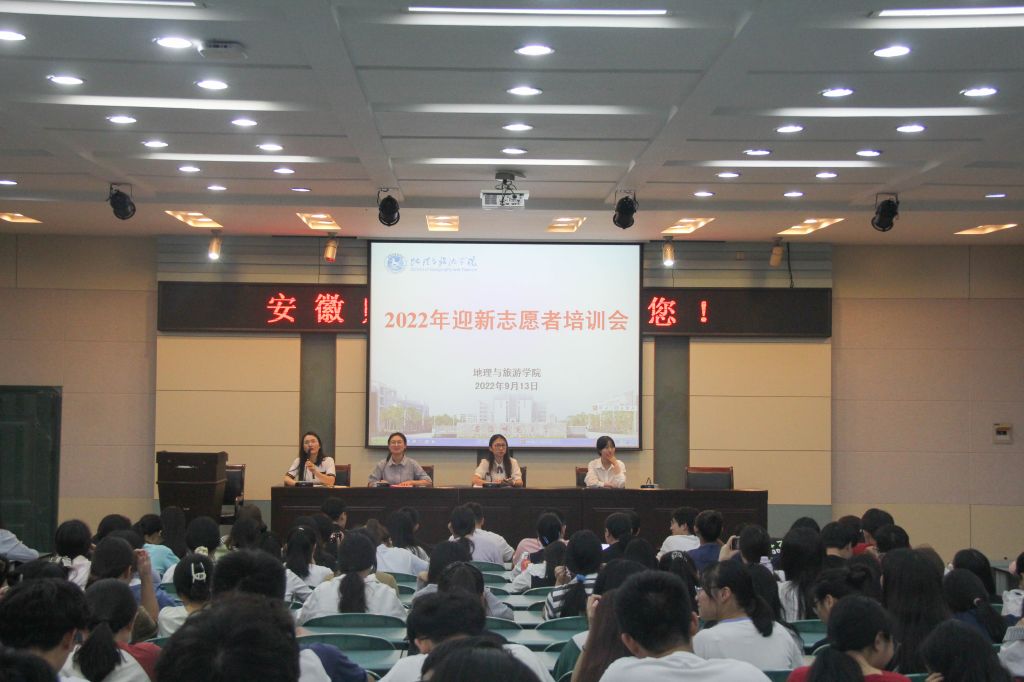 实验楼101教室召开了2022年迎新志愿者培训会。辅导员韦银艳、吴文涵和新生辅导员操晶晶、谢园以及200多名志愿者们参加会议。会上,韦银艳从志愿服务精神、安全纪律、工作态度和文明礼仪四个方面明确了志愿者的工作任务与要求。随后新生辅导员依次发言,着重强调了志愿者要以良好的精神面貌树立好榜样,给新生留下师大及女同做爱