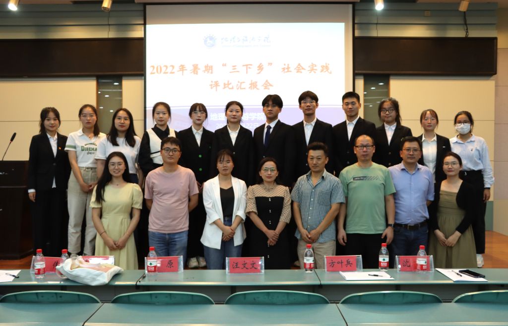 副院长汪文文,地理科学专业副教授方叶兵、城乡规划专业副教授王原、土地资源管理专业副教授沈非、地理科学专业讲师姜伟、旅游管理专业讲师洪学婷,辅导员韦银艳、吴文涵担任评委,各社会实践团队代表、各年级团支部代表到场聆听汇报。本次会议由姚兰主持,采取“线上+线下”的汇报方式。