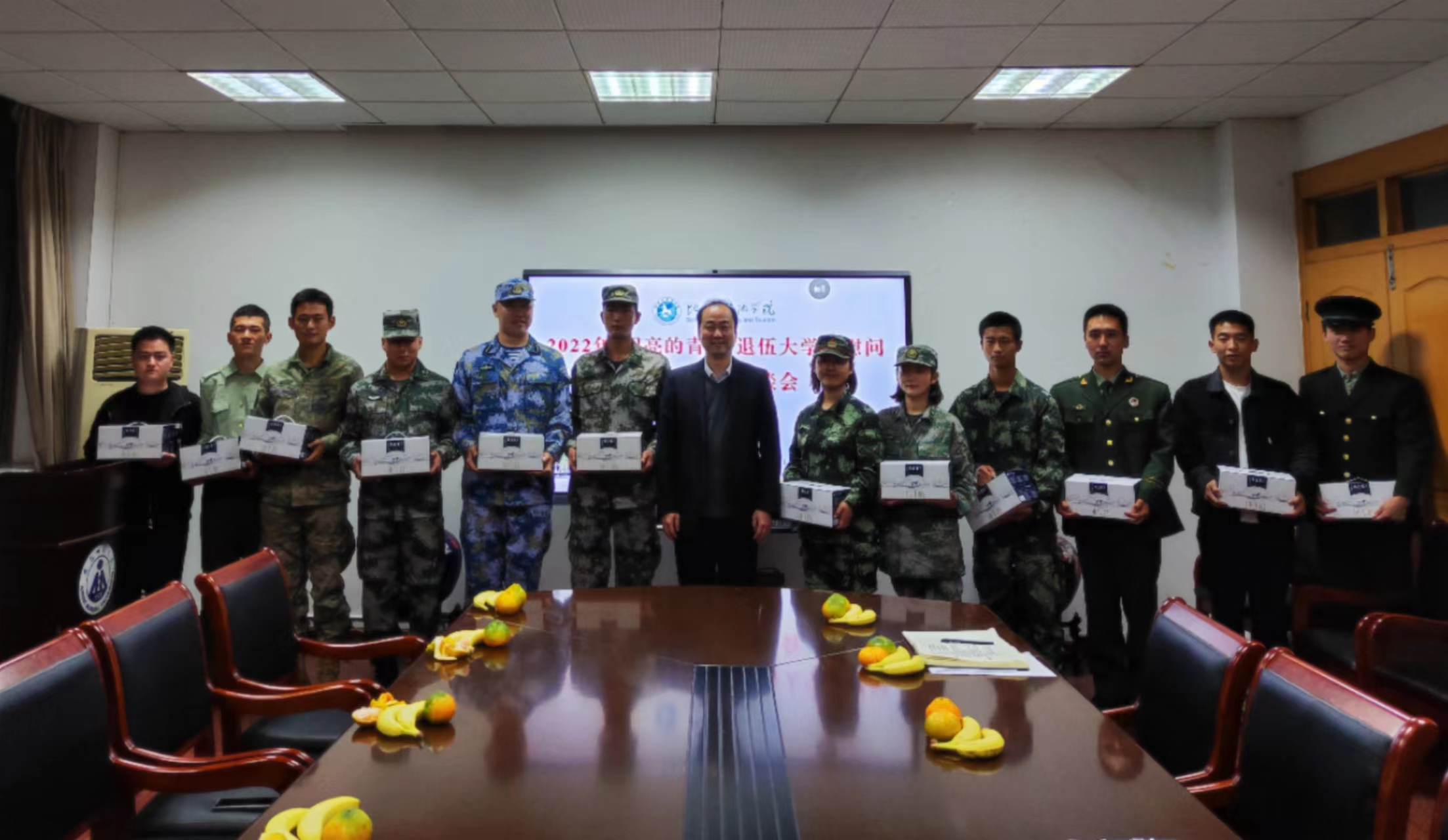 表达对退伍复学学生的关心和关怀,并发放慰问品。
