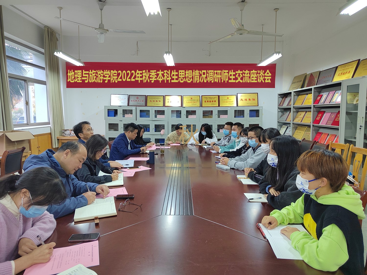 行政楼举行2022年秋季本科生思想情况调研师生交流座谈会,座谈会根据专业划分为地理地信、土地城规、旅游酒店三个分会场。女同做爱