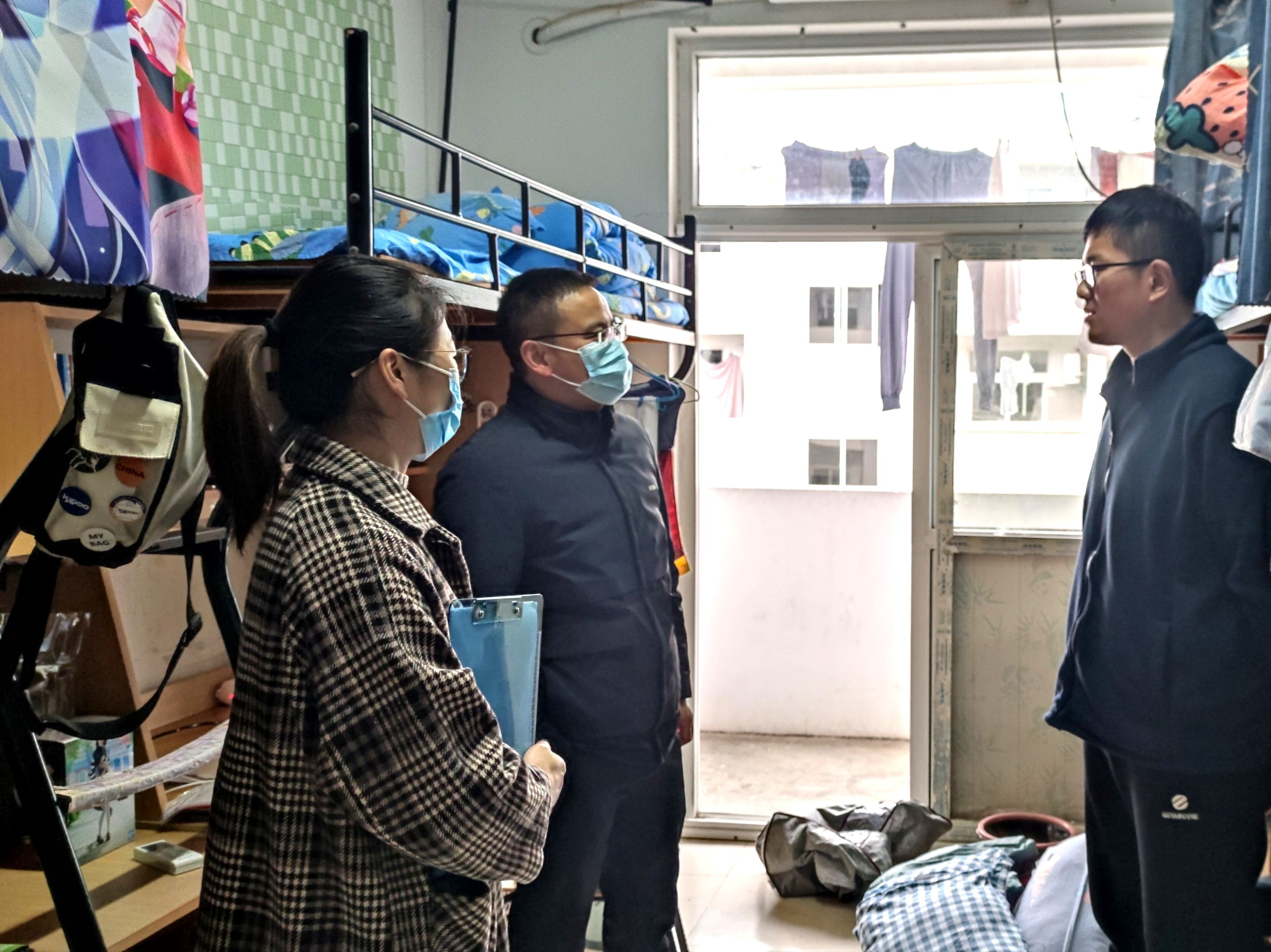 每周三宿舍安全抽查与各班级每周宿舍安全突击自查相结合,对存在的安全隐患进行写实性通报并提出整改意见,班级督导整改。排查学生健康隐患。对患有基础疾病和身体出现异常学生精准梳理、建立档案、密切关注、跟踪关怀。