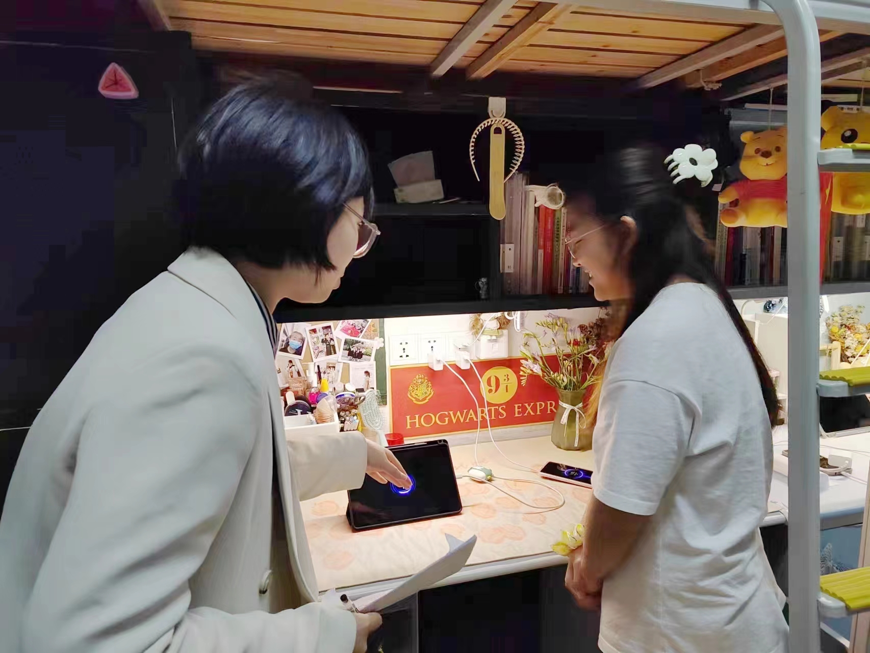 领导与辅导员深入学生宿舍一线,了解学生学习生活动态,细致排查宿舍安全隐患。建立“校-院-班”三级联动的寝室安全隐患排查机制,将女同做爱