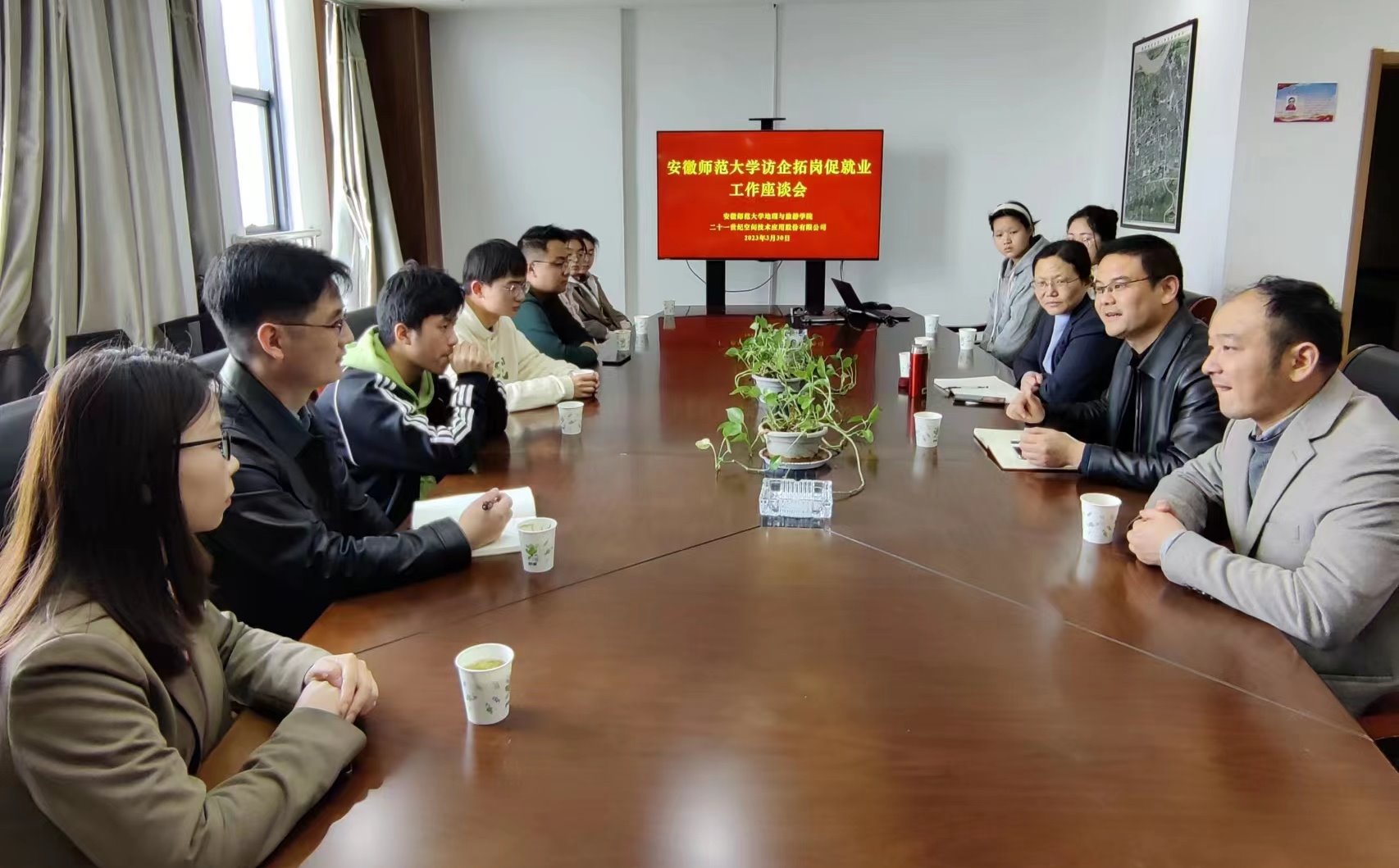 院长方凤满、党委副书记付勇、地理信息科学专业负责人宋立生以及毕业班辅导员代表等一行前往淮南市二十一世纪(安徽)空间技术应用有限公司开展访企拓岗促就业行动。
