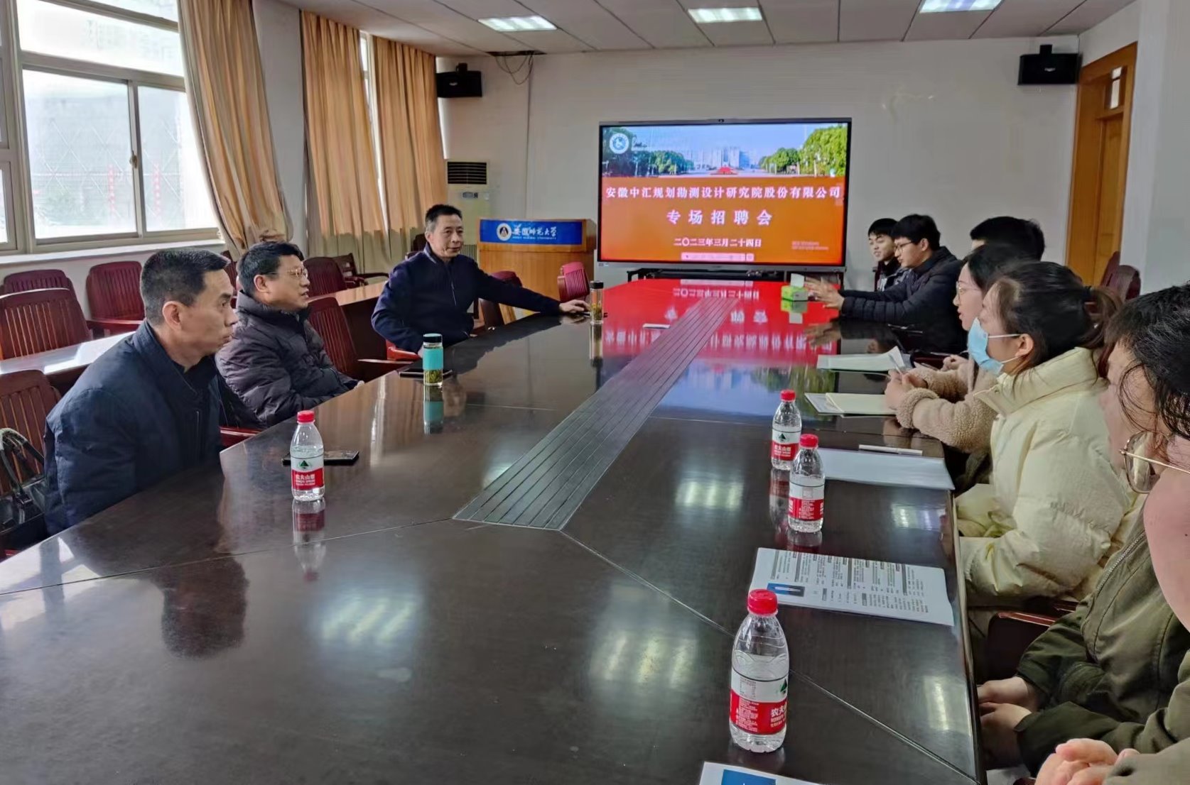 还深入实施“请进来”的就业举措,多形式开展“访企拓岗促就业”,发动专业教师、毕业校友等资源,积极邀请招聘单位来校举行专场招聘,3月23日至24日三亚海棠湾开维费尔蒙酒店、安徽中汇规划勘测设计研究院分别通过线上招聘宣讲、线下专场招聘等方式,来校招聘应届毕业生,洽谈就业实习合作等事宜,全力推进毕业生充分就业。