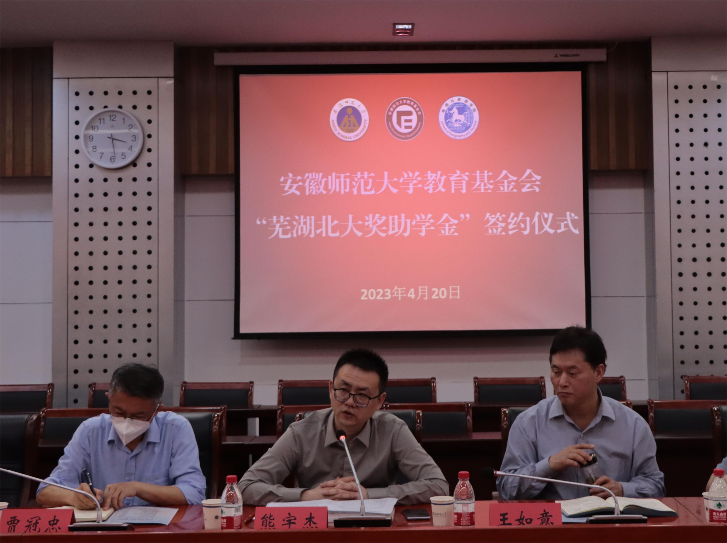 王如意代表校教育基金会向芜湖北大校友会表示衷心感谢,强调将积极配合学校加强对学生的激励和关爱,引导学生积极进取、勤奋学习、感恩时代、回报社会,充分发挥“芜湖北大奖助学金”的资助育人效用,为学生的成长成才和发展助力。