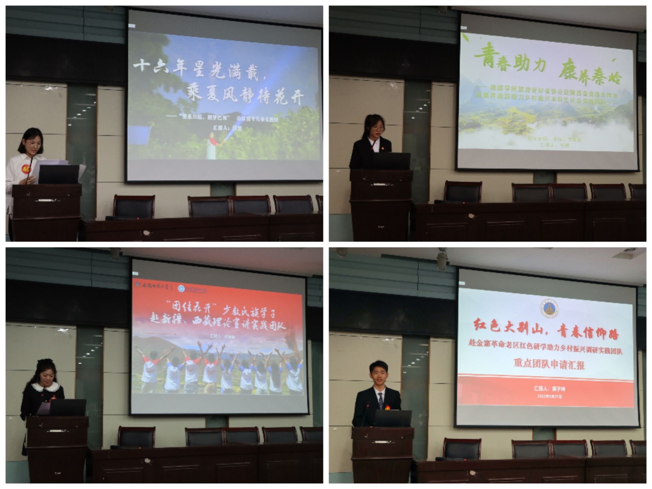 党委副书记付勇、地理科学专业负责人朱永恒、旅游管理教师阮陵、地理信息科学教师齐凌艳、土地资源管理教师王满银、城乡规划教师白雪等老师担任评委,团委负责人、辅导员代表以及各团队代表参加会议。