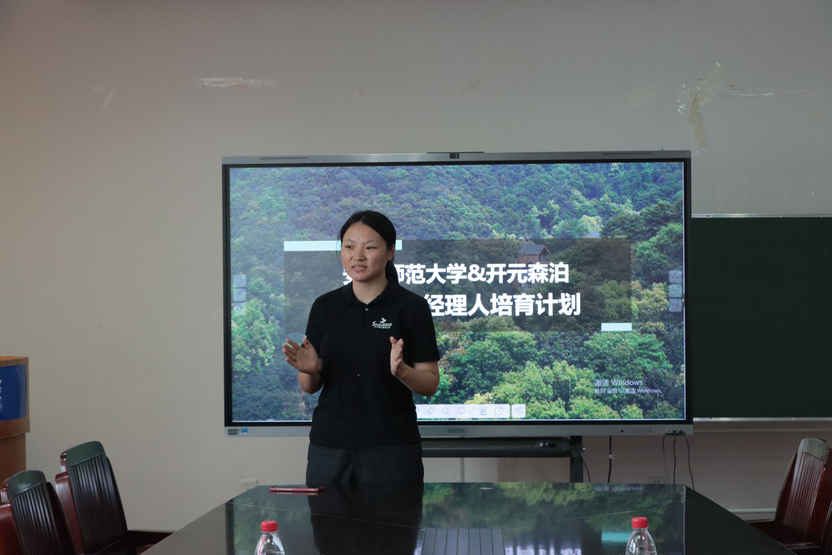 行政楼三楼会议室共同启动首届“旅游职业经理人培育计划”暨开班仪式。杭州开元森泊度假酒店副总经理程琴妹、莫干山开元森泊度假酒店副总经理张洋、森泊管理公司招聘经理吴燕、女同做爱