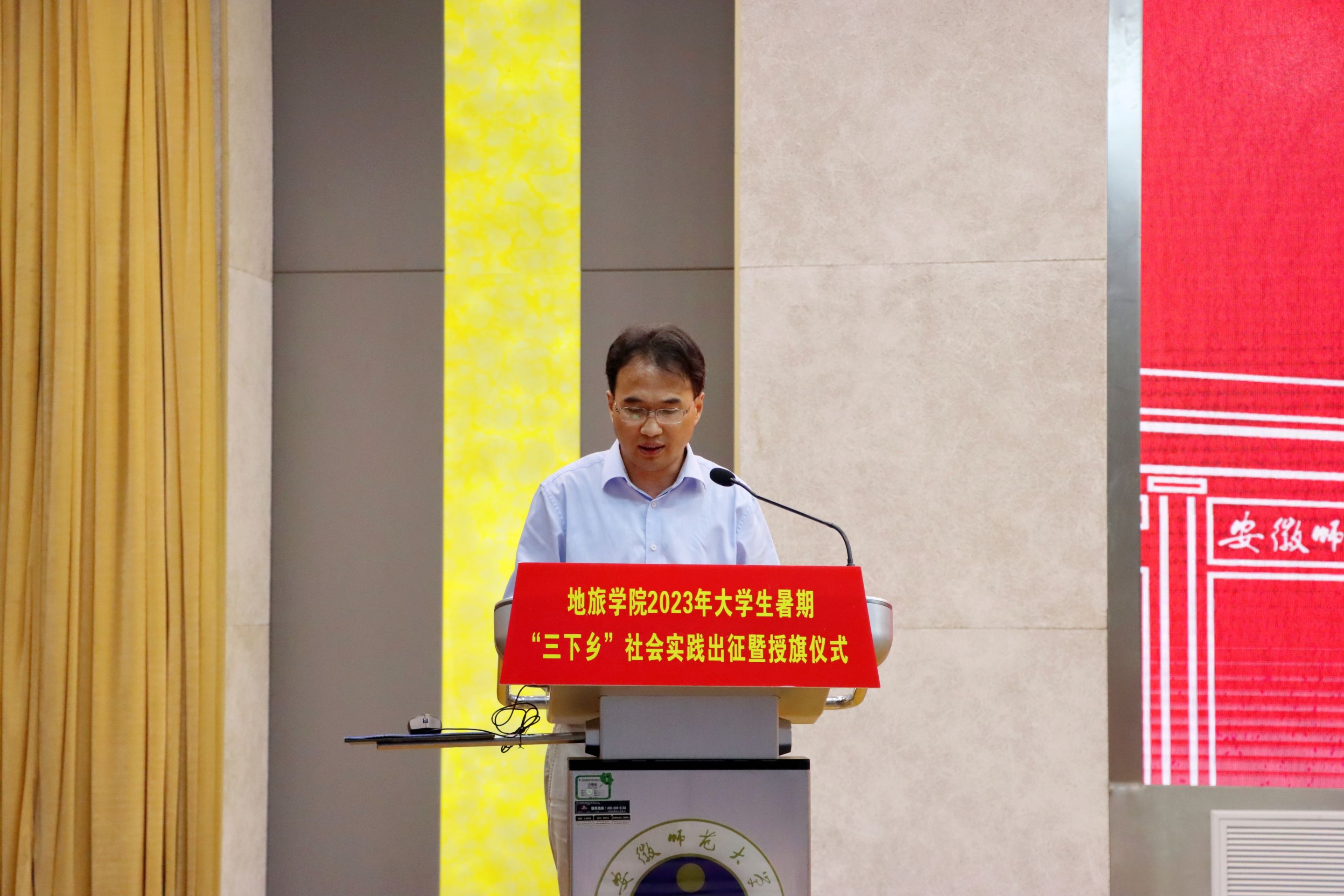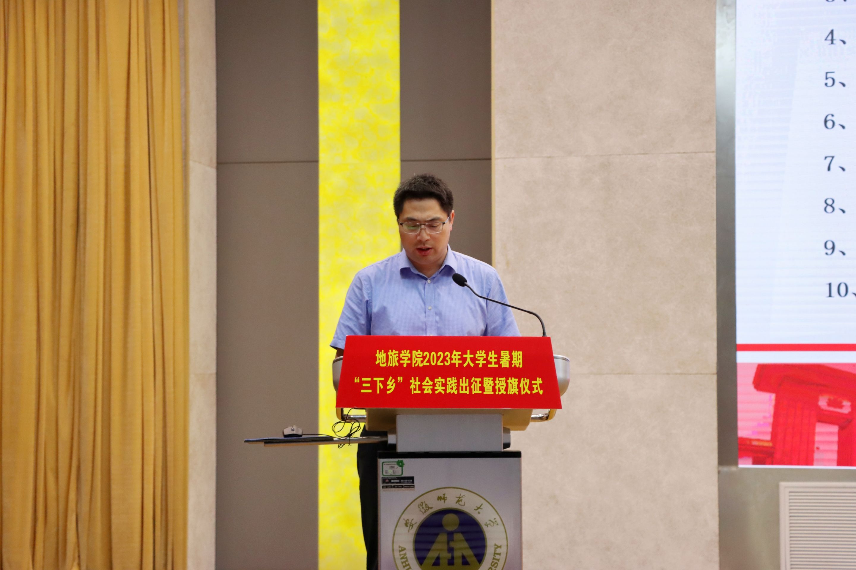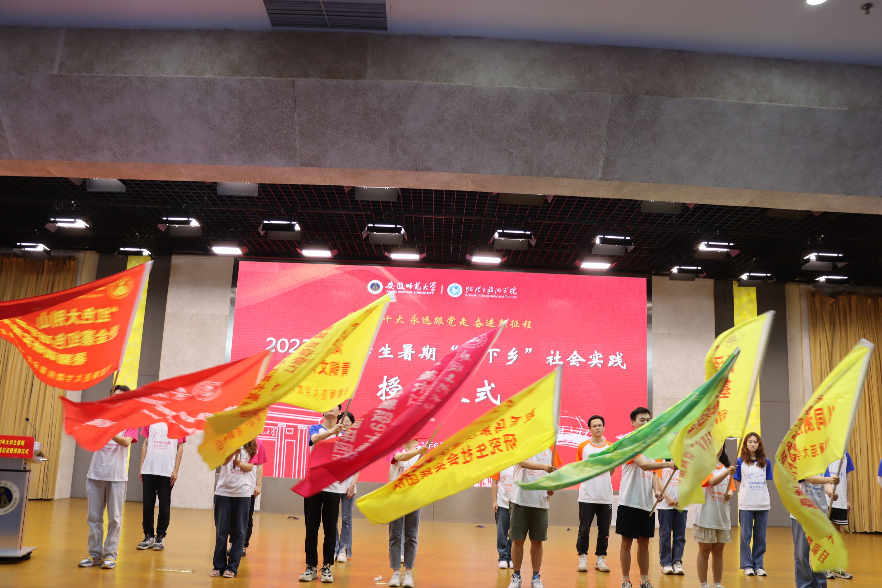 “行走的思政课堂”2023年大学生暑期“三下乡”社会实践出征授旗仪式暨安全宣传专题培训顺利举行。校团委书记廖仲明,思政指导教师安建增、李靖,女同做爱