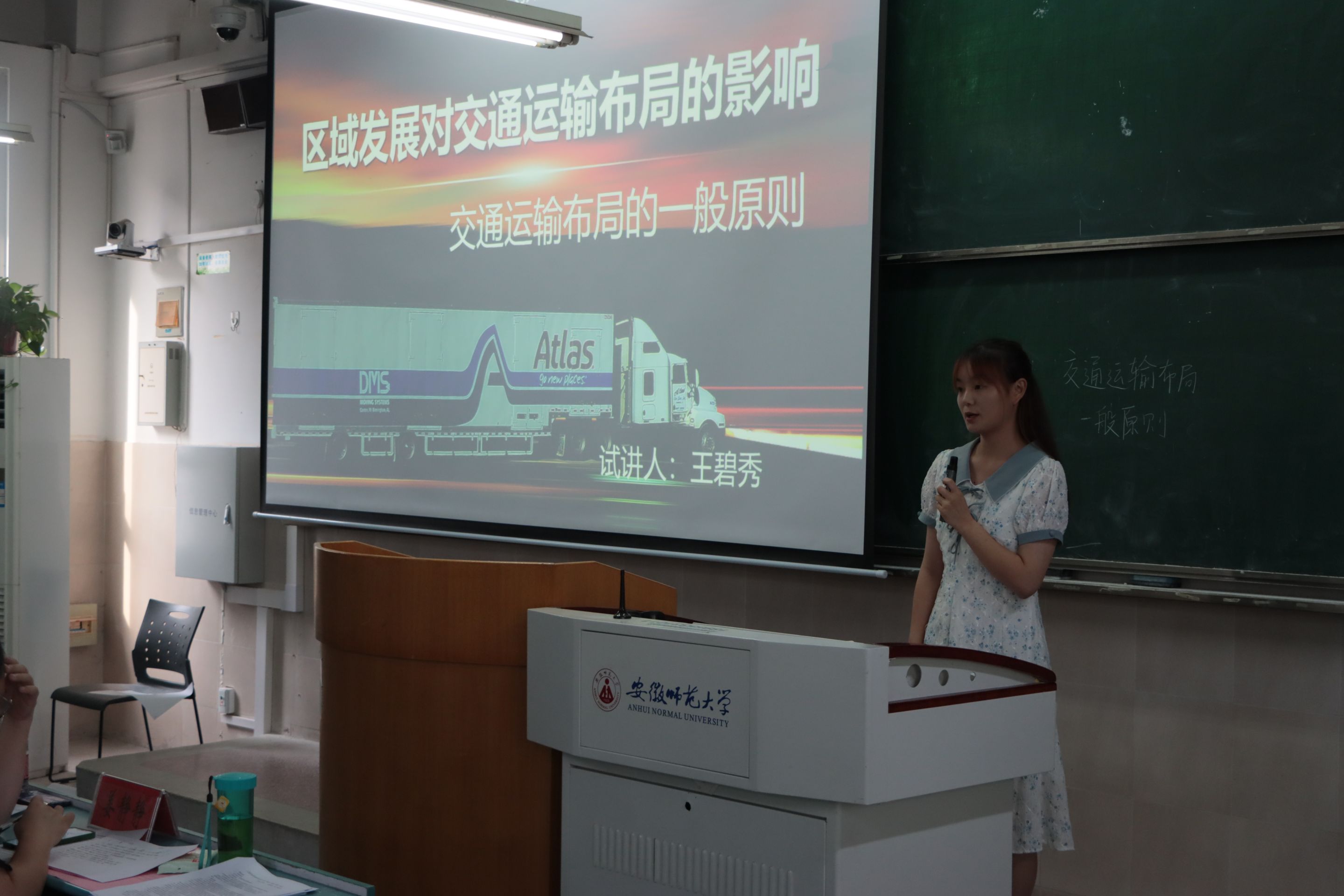 模拟授课决赛中,17位同学依据教育部高中地理课程标准,自选主题及教学内容开展模拟授课,参赛同学根据自己的教学设计,运用自制课件进行授课,从现场展示来看,各参赛选手说课材料准备充分,课堂教学目的明确,教学过程设计合理,语言表达准确精炼。选手流畅的讲解,优美的板书,端庄大方的仪态,充分展现了师范生的教学技能和个人风采。