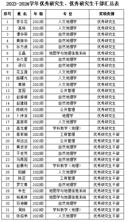 2023-2024学年优秀研究生及优秀研究生干部拟推荐名单。现公示如下: