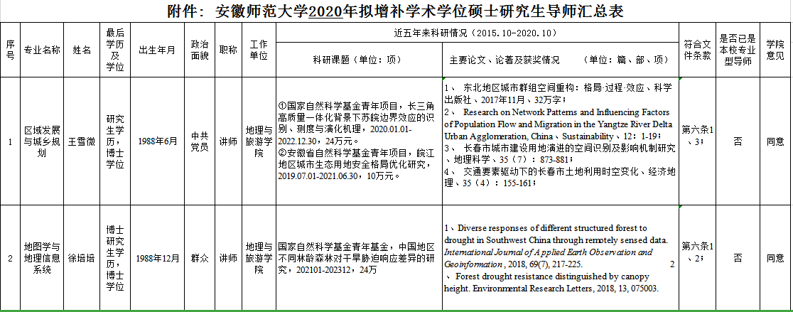 根据校研究生院《关于开展2020年度硕士研究生导师增补工作的通知》(校研字 (2020) 32号)和《安徽师范大学学术学位研究生指导教师遴选办法》(校学位字 (2019) 12号)等文件的精神和要求,女同做爱 在坚持公开、公正、公平原则的基础上,通过个人申请和女同做爱 教授委员会评审,现确定女同做爱 2020年拟增补硕士研究生导师名单。现将名单子以公示。