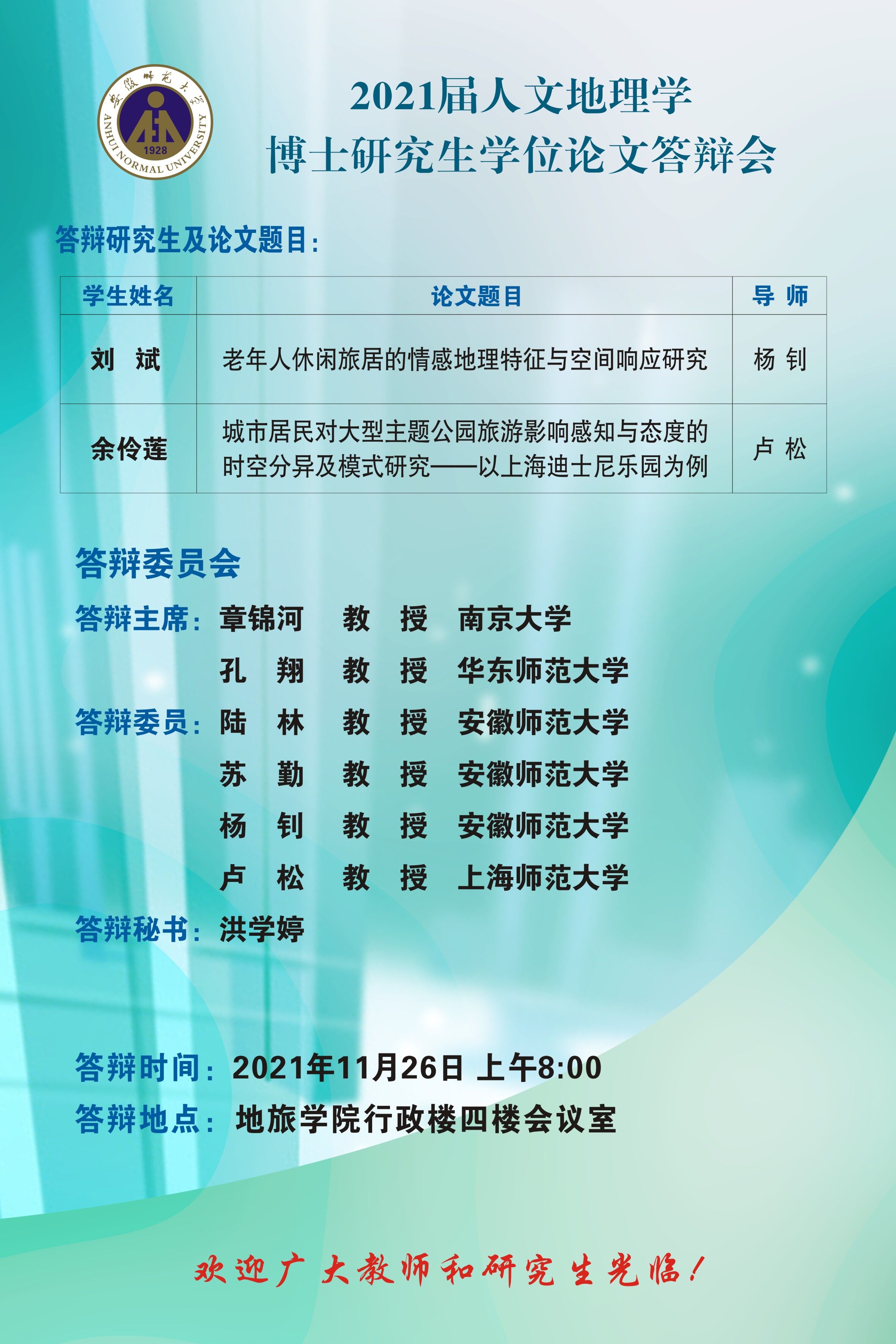 安徽师范大学女同做爱 博士研究生答辩公告(第二批)